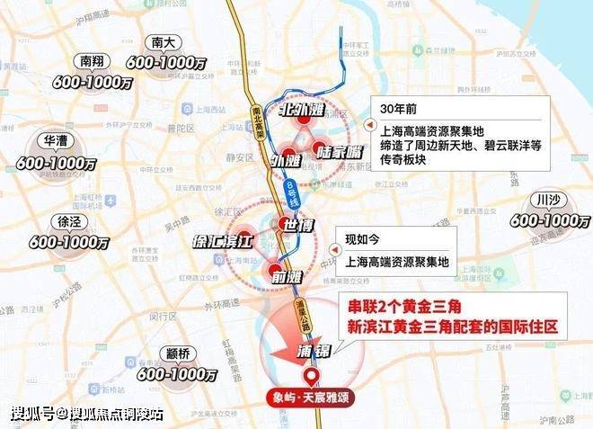 众所周知,项目高端城市资源高度集中在2大滨江黄金三角:由外滩-陆家嘴-北外滩构成的传统中央商务区,由前滩-徐汇滨江-世博构成的新兴中央活动区。其他所有板块几乎都是经由它的价值辐射。换言之,谁距离他们更近通勤更快谁就更有未来!