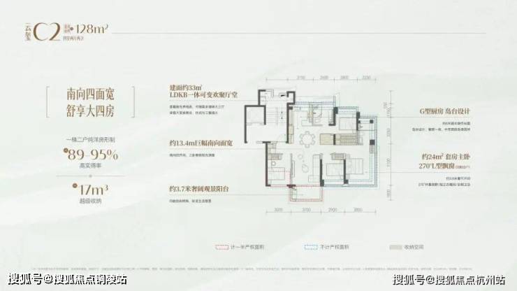 建发·云湖玥,约97㎡有个“三库”设计,约128㎡是四库设计: