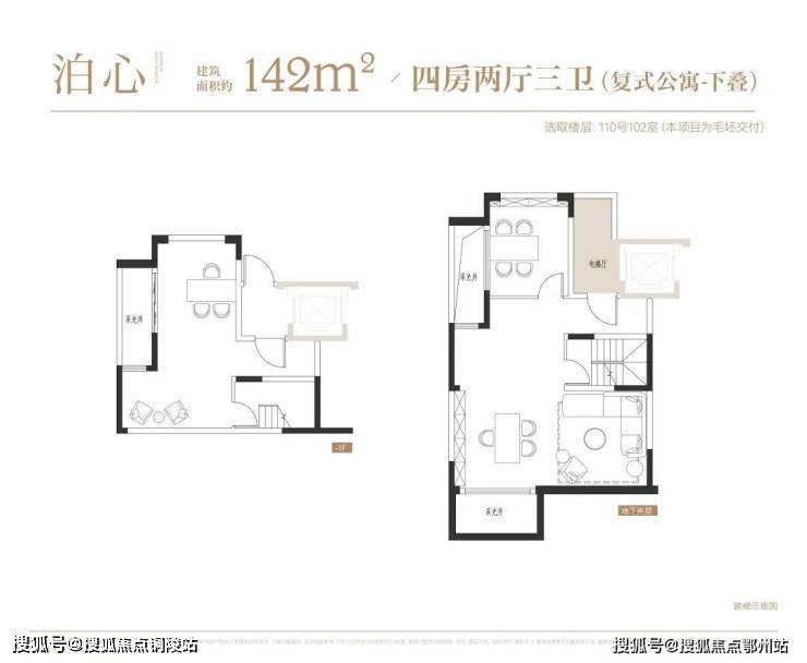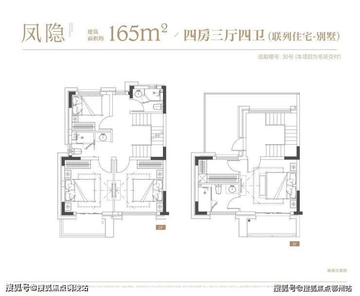 叠墅:叠墅一共四层,分为上/下叠,上叠建筑面积约139㎡,下叠建筑面积约142㎡。
