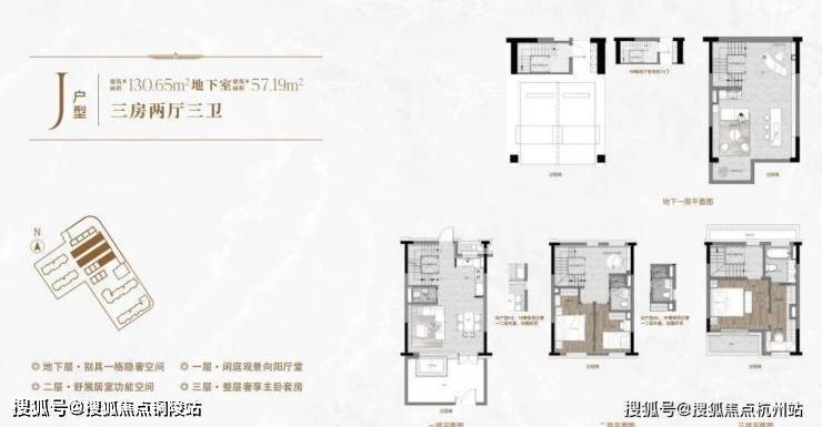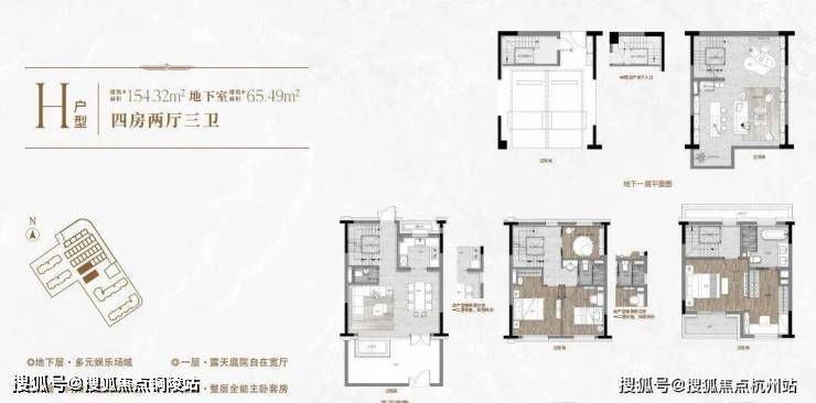 一楼和地下室主社交和志趣,二楼是子女的房间,三楼是主人休憩区。