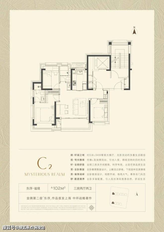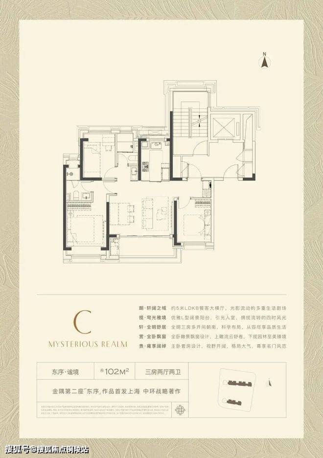 102㎡产品的全新产品,格局上超越了传统意义的三开间朝南,超大尺度的5米横厅,真正实现3.5开间,让业主起居之间沐浴更多阳光的同时,公区尺度感也直逼其他项目建面约100-120㎡户型。