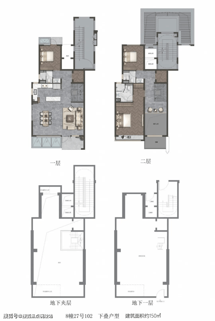 叠加别墅:建面约149-160㎡(上叠精装,下叠毛坯,均价约6.6万/㎡)。1