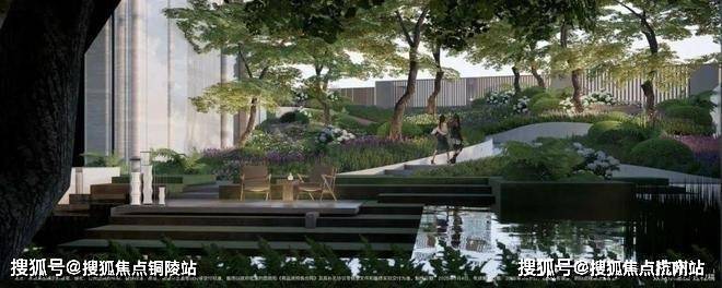 小区做了抬高处理,整体抬高,最高处超过7米,整个小区形成了错落的格局,在小区内部做台地景观。所谓台地,便是将小区内地面整体抬高,与市政道路形成一定的高度落差,这样建造的社区气势磅礴,居高临下。通过景观设计,将小区景打造成了立体台地花园,设置缓坡、下沉式花园、台阶等,让整体景观表现出立体层次感,错落有致。