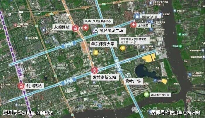 地块所在的紫竹区域占据浦江上游第一湾独特地理位置,核心区域有闵行第一大湖兰香湖,水域面积广阔,岸线绵延,湖光潋滟。