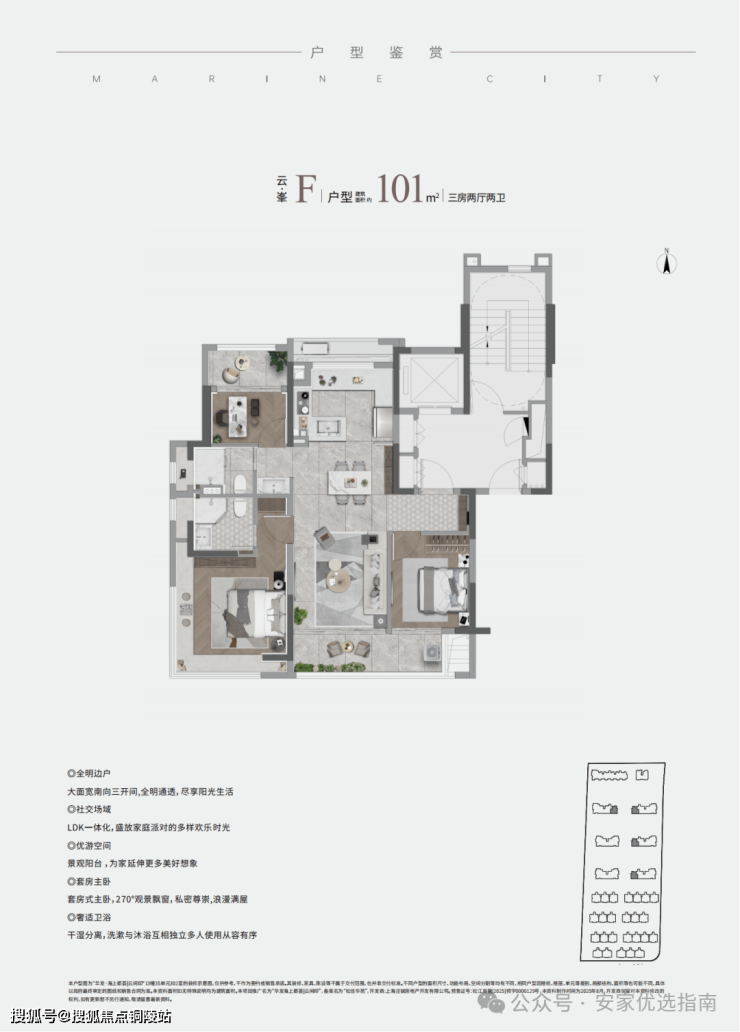 项目建面约101㎡的南厅边套户型,阳台面积接近12㎡,还有超过8㎡的飘窗,再加上设备平台等面积,房间的实得率比起松江目前在售待售的所有项目都要高!这不是绝版是什么?