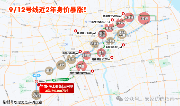 徐汇滨江、南京西路、苏河湾、北外滩新房预计价格都超过20万/㎡,因为都是大户型,总价门槛起步4千万。而同一条线,价格只要前者的十分之一就能一步到位精装3房,你说等预计价格变成实际售价项目会不会被抢爆?!