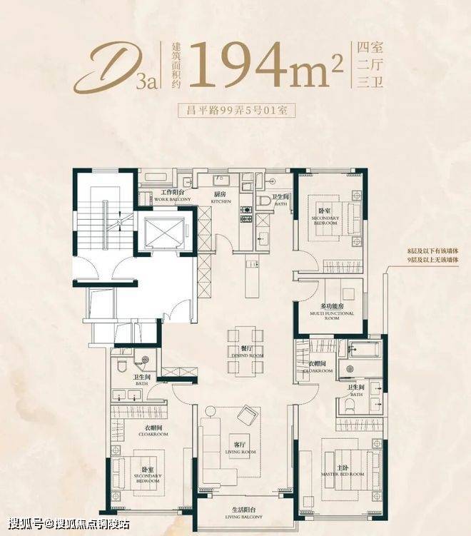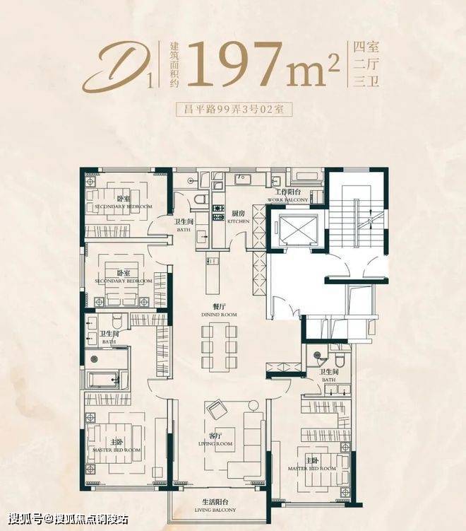 而且你仔细看,2个套房分列客厅左右,并且配置极为相似。