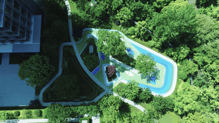 世博天悦精心设计了十个主题各异的艺术庭院,巧妙地将建筑与景观融合在一起。