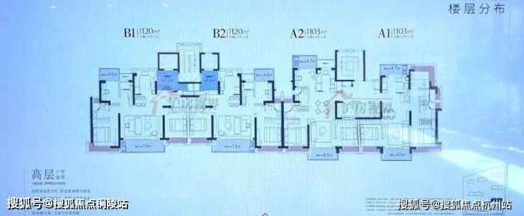 户型建筑层高3.1-3.15米,无连廊,双阳台配置。其中建面约103平户型2梯2户,其余一梯一户。