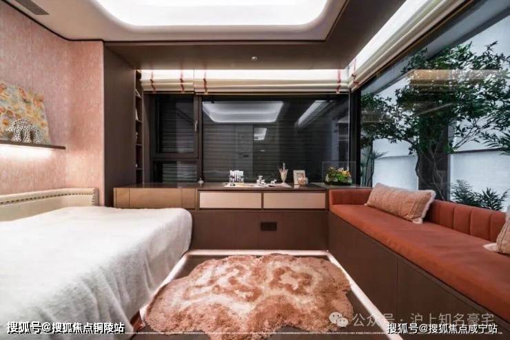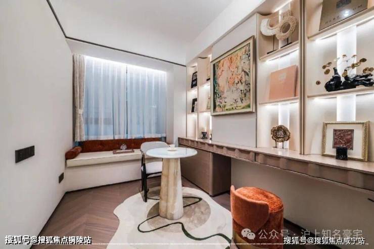 另外采用意大利 “大花白” 天然石材实现地墙满铺,双台盆与双镜柜的对称设计复刻五星酒店规制,美妆冰箱精准控温呵护护肤品,奢华至极!