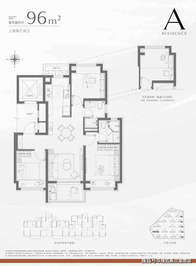 建面约96㎡3房,经典飞机户型,精致进阶