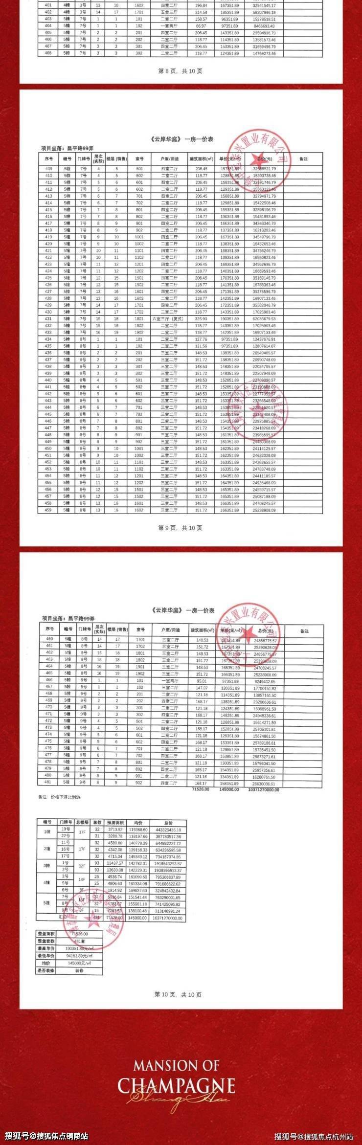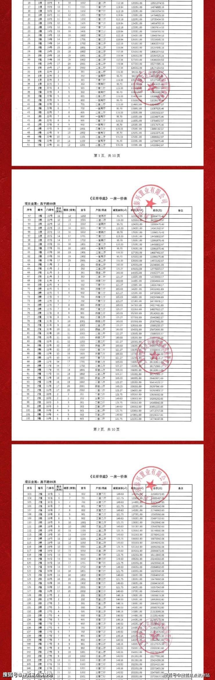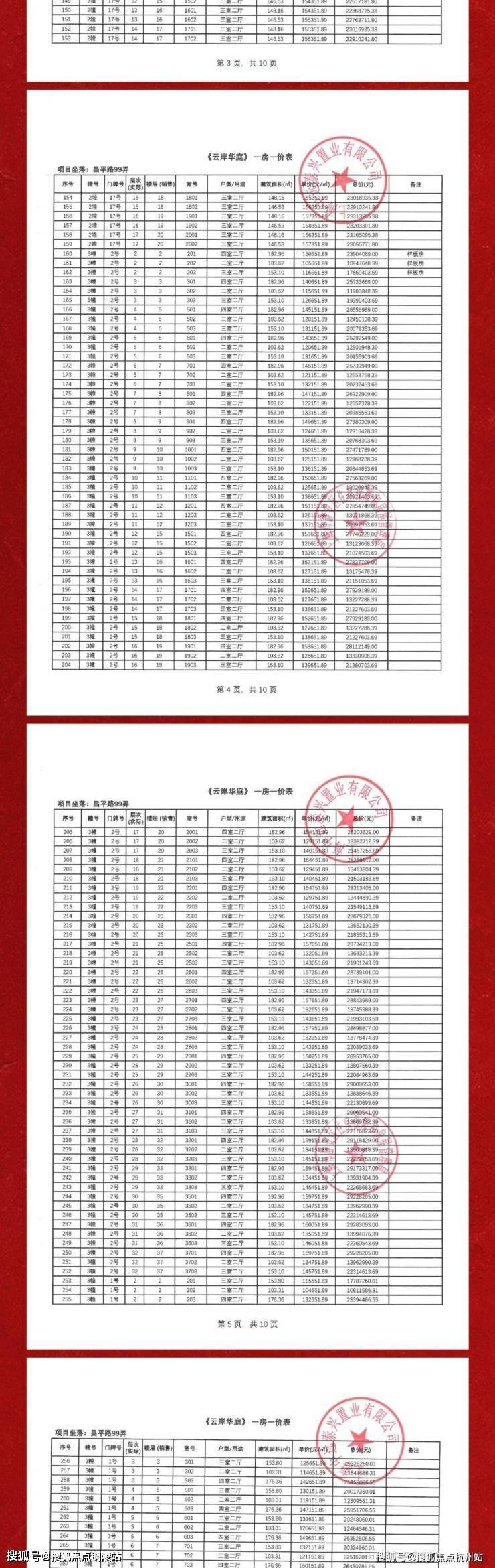 一房一价表如下