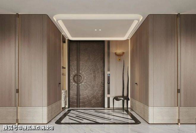 ①、入户就是约6㎡的独立电梯厅,隔开了室外的喧嚣,也能作为套内空间的延伸,增加收纳的空间。