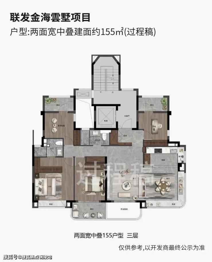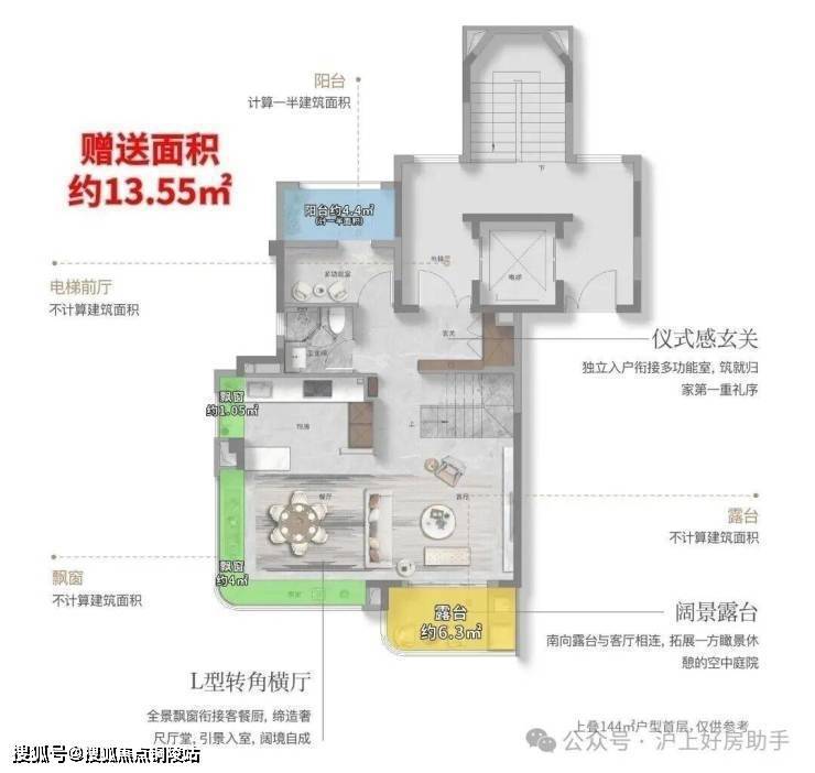 并且,整个户型的私密性、尺度感都极强,概括了以下几点: