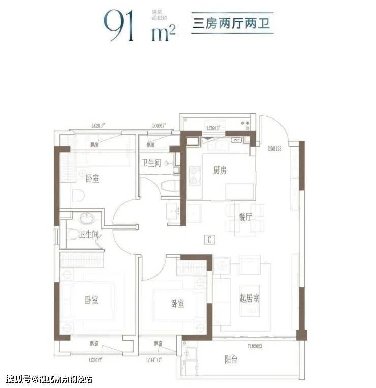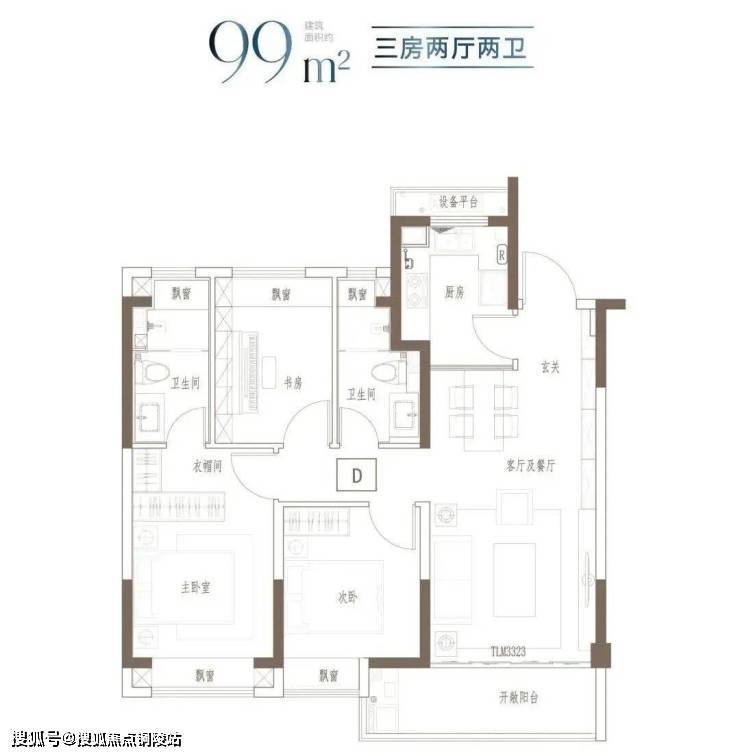 建面约91㎡-121㎡ 3房2厅2卫;这几个户型都是3房的设计,满足想一步到位的购房者。3开间朝南+客餐厅连通阳台+全卧室飘窗,以及套房式主卧设计+2卫,即使是三代同堂,也能让生活从容。
