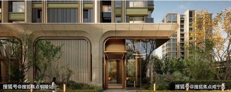 取意豫园中式园韵,打造约 99 米隐奢入口空间结合独立的车马院,风雨廊道与人车分流独立双入口,带来尊贵的归家体验。