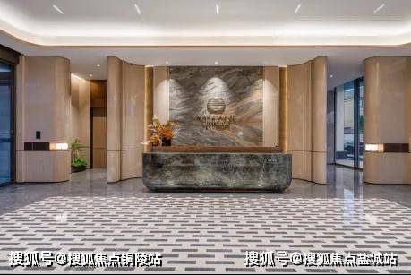 酒店式的社区大堂:精致的迎宾水景、苍劲滴翠的罗汉松,为城市的界面,增添一抹亮色,也让当代年轻人,在享受现代都市生活的同时,感受到家的温暖和亲切。蓝翡翠的奢石,以深邃幽远的尊蓝色基底,尽显光彩下的神秘奢华;而顶部异形的仿铜星空顶设计,用香槟金色斜角造型铝板搭配熠熠灯光,碰撞出科技与艺术的美学。