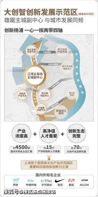 江湾五角场和新江湾城共同构建了大创智创新发展示范区。形成了世界级的产业集群,是 “产业浓度、人才浓度、创新生态” 兼具的创新功能聚集区。