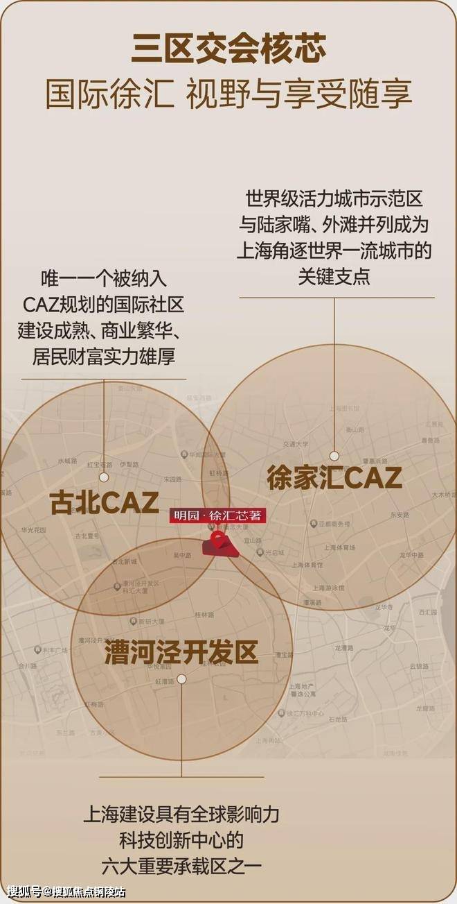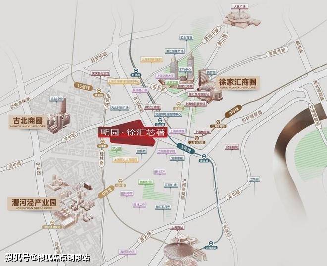三区交汇 催生活力与繁华,明园·徐汇芯著售楼处电话:400-9699-334✨【官方认证】✅✅✅坐拥徐家汇CAZ、古北CAZ、漕河泾开发区,三大辐射圈,享国际繁华版图。交通枢纽顶尖资源约3KM范围内享摩登商圈