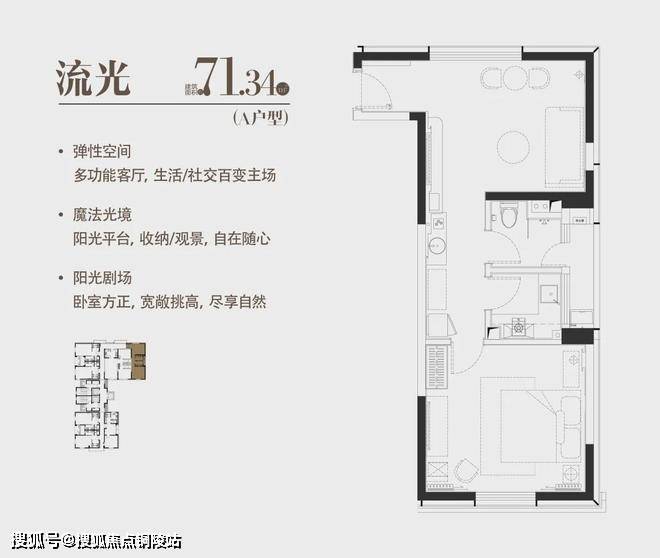 A|流光|建面约71.34m²|一室两厅一厨一卫