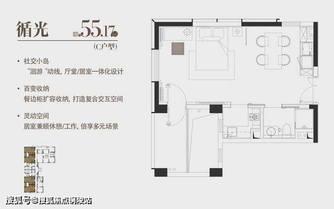 C|循光|建面约55.17 m²|一室一厅一厨一卫