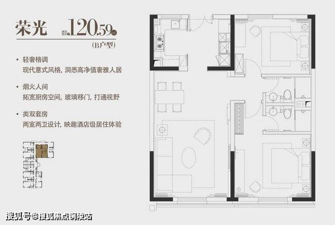 B|荣光|建面约120.59m²|两室两厅一厨两卫