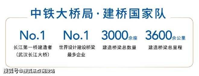 中铁大桥局集团前身为1953年修建万里长江第一桥“武汉长江大桥”经政务院批准成立的铁道部大桥局,是中国桥梁事业的领军者,是世界上设计桥梁最多的企业,中国“一带一路”走向世界的“建桥国家队”。在世界范围内建造桥梁总数超过3000 座,建造桥梁总里程超过3600余公里,建桥技术国际领先。近70年来,公司曾先后参与建设了杭州湾跨海大桥、东海大桥、港珠澳大桥、武汉长江大桥、南京长江大桥等一系列知名桥梁,一直引领着中国桥梁事业发展方向,以建桥的心志去建造住宅。