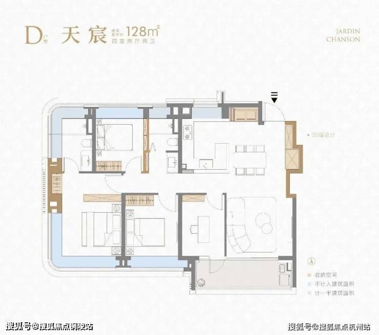 项目建面约128㎡4房同样出彩。