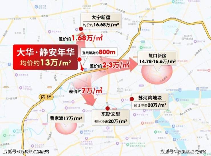 上游东斯文里预计比项目贵7万/㎡,同级虹口新房比项目贵2-3万/㎡,下游新房也比项目高1.68万/㎡,大华·静安年华安全垫拉满!