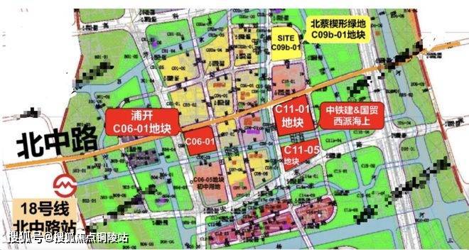 地块位于北中路北侧,紧邻C10-01的小学规划用地。不过,该地块距离现有的地铁站略远,与18号线北中路站约900米。