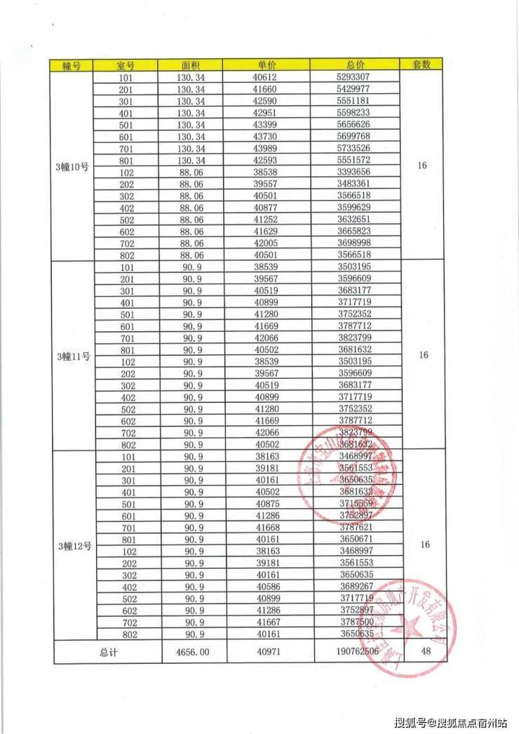 项目一房一价表