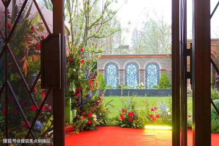 整个泳池天花板,呈现出海派拱形元素,落地玻璃窗外,是下沉式的景观空间: