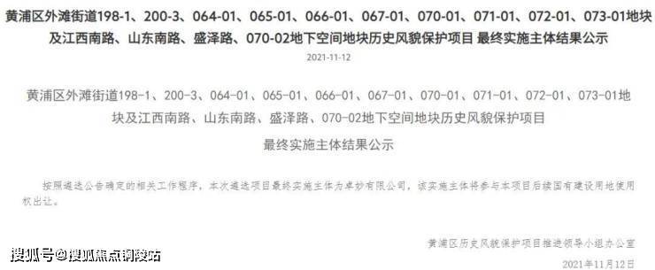 回顾下金陵东路项目的拿地过程:2021年11月12日,黄浦区外滩街道198-1、200-3、064-01、065-01、066-01、067-01、070-01、071-01、072-01、073-01地块及江西南路、山东南路、盛泽路、070-02地下空间地块历史风貌保护项目实施主体公开遴选入围结果公示。