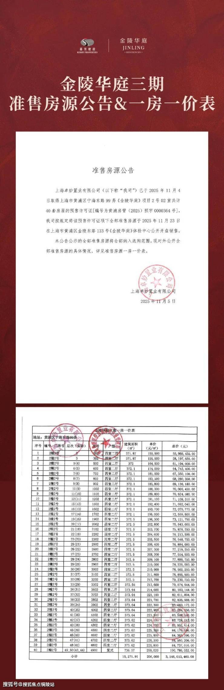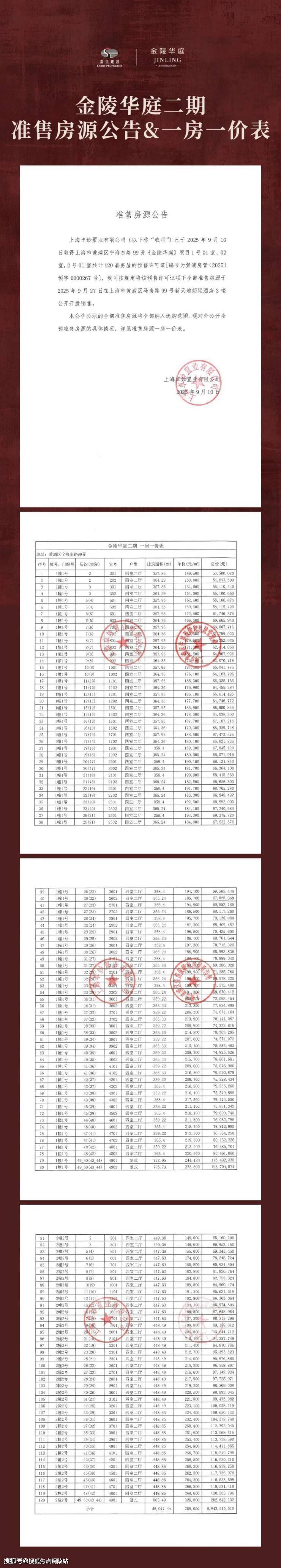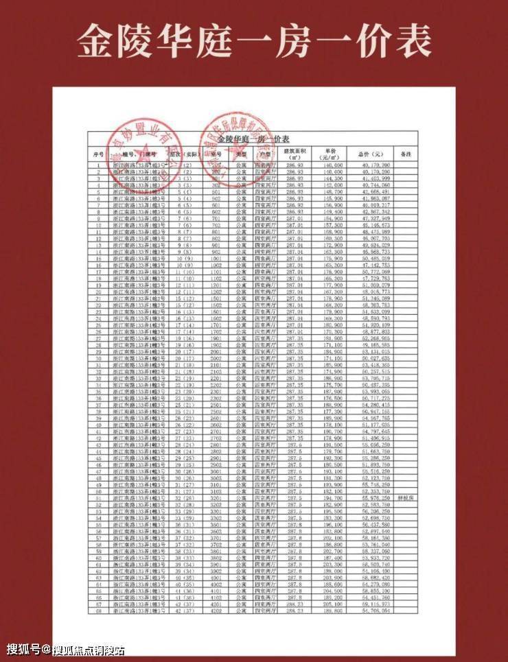 【金陵华庭】一期一房一价表