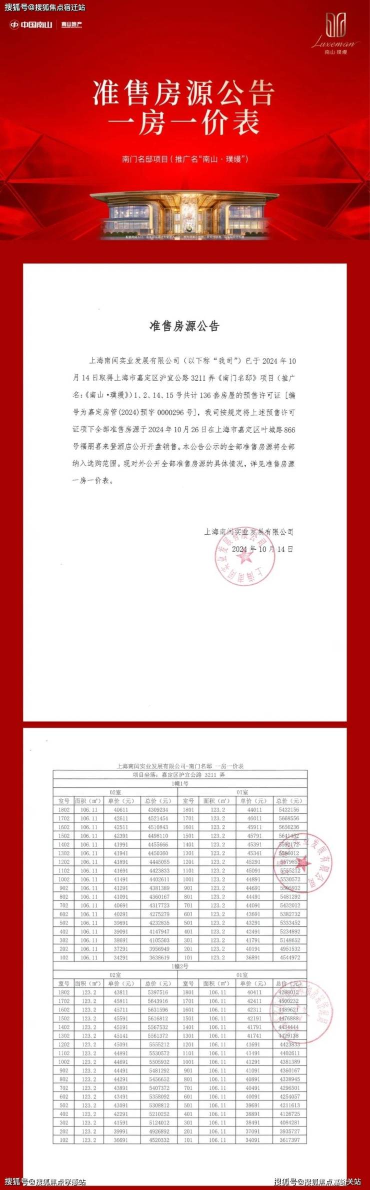 南山璞缦售楼处营销中心:400-8855-420✔✔✔去年10月24日,上海第三批次土拍中,南山以总价175602万元成交嘉定工业区南门社区JDC1-0801、JDC1-0802单元44-08地块,地块出让面积34703.9㎡,容积率2.3。溢价率0%,楼板价22000元/㎡,装修标准2000元/㎡,房地联动价46000元/㎡。