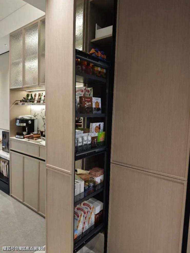 本次还增加了非常实用的零食柜和餐边柜,未来业主在这里可以作为自己的一个日咖夜酒区域。