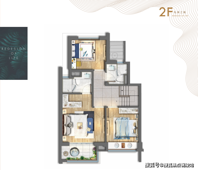 二楼双南向卧室设计,南向主卧为套房设计,南次卧带景观飘窗。