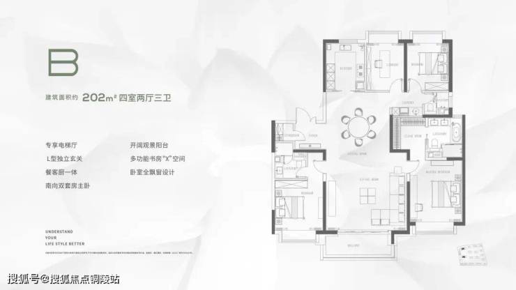 项目独具匠心推出七种惊艳户型,每一个户型设计都从细节出发,尺度宽奢,空间朗阔,适合三代同堂的大家庭或多胎家庭,给繁华都市的大家庭提供理想的栖居地。