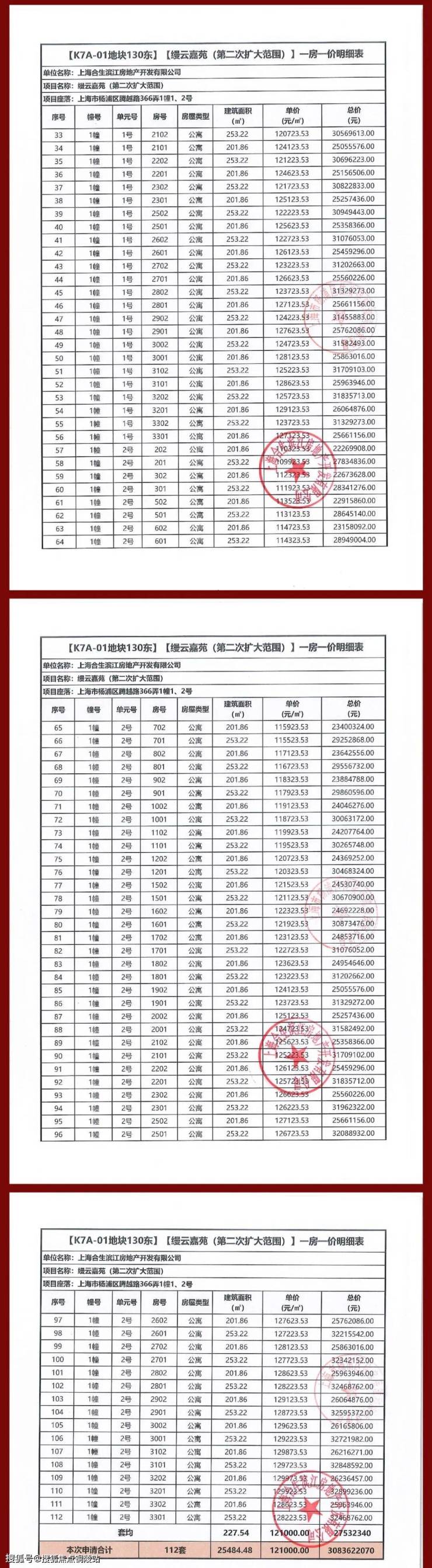 一房一价表如下: