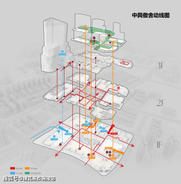 虽然商业和住宅垂直融合,但住宅动线和商业动线是永不相交的“双轨制”模式。