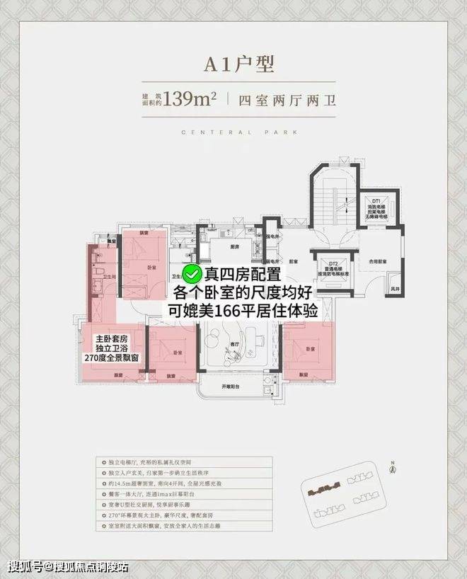 中环铂樾售楼处电话:400-9699-334✨【官方认证】✅✅✅建面约139㎡的户型(西边套),独立电梯厅+罕见的大横厅设计,大面宽短进深,约15.05m的南向奢阔面宽,无论是采光感、尺度性都拉到了极致,享受城央豪宅级别的采光。