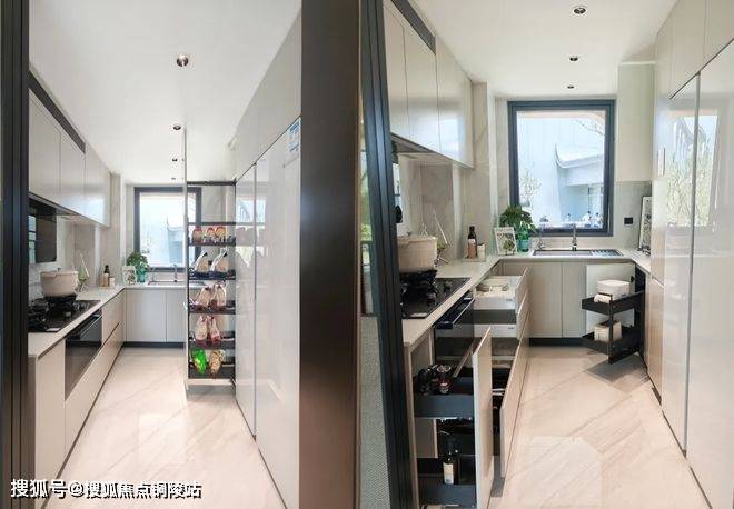 ④加载五金升级、调味拉篮、锅具拉篮,800碗碟三层拉篮,餐厅零食拉篮柜等;容量节省了约250L,相当于5.7个20寸登机箱,极致的收纳。