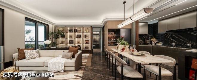 另外一方面,客卫的移位释放了大量的空间,放大了翎翠滨江餐厅、厨房,尺度感、通透性极强,并且做到了几乎0空间浪费。
