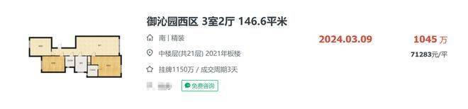 目前御沁园售楼处电话:400-9699-334✨【官方认证】✅✅✅最新一期房源二手房在链家网上挂牌5.8-7.5万/㎡,近期的成交不多,7万+/㎡的成交,还是24年3月的案例。