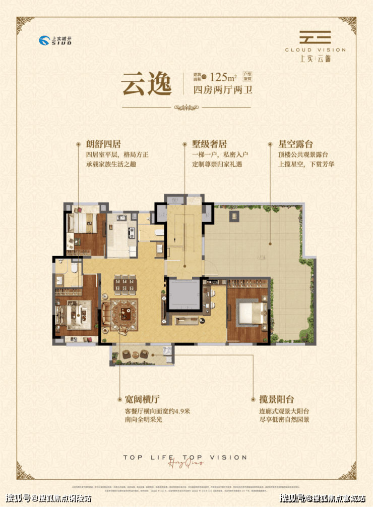 约125㎡四房两厅两卫,一梯一户设计,专属入户空间。