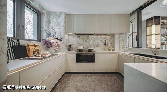 比如厨房的一圈橱柜都是飘窗,水槽也是。这样还能多出一个岛台空间,做饭的时候能和家人交流,象屿天宸雅颂售楼处电话:400-9699-334✨【官方认证】✅✅✅,打造更有交流感的餐厨区域。