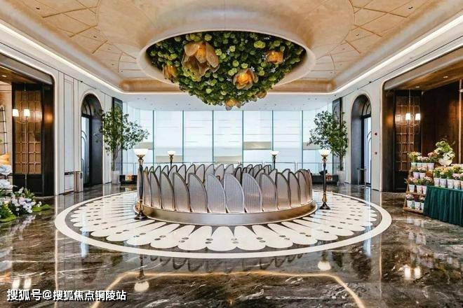 进门之后,恍若走进一幅立体绽放的画卷。地面采用了石材拼花,纹理如行云流水般舒展,在光影交错间勾勒出低调的奢华。