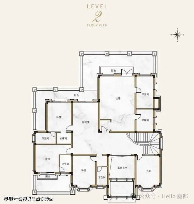 纯地上两层,建面约850㎡(7房4厅6卫)
