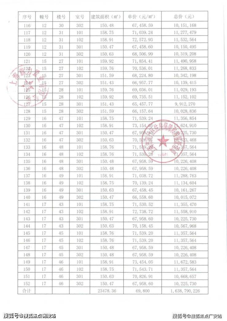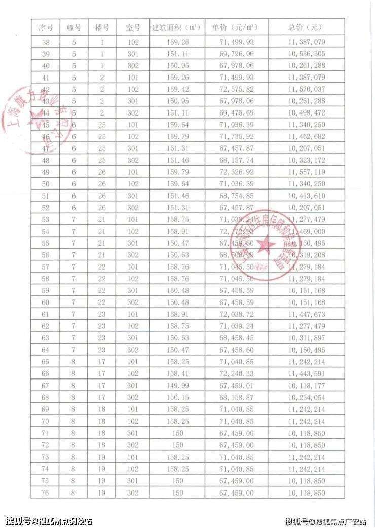 崇明某触发积分项目部分一房一价表