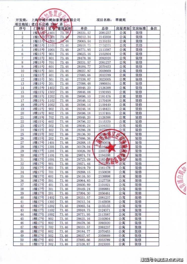 项目一房一价表